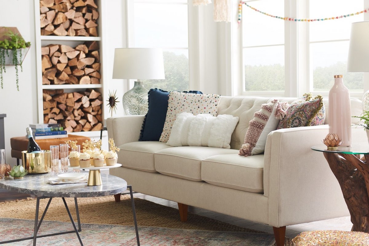- Height is key and varies greatly depending on upholstery height. The table should be 1-2 inches lower than seat height, but consider lifestyle as well – a higher table makes entertaining a breeze.